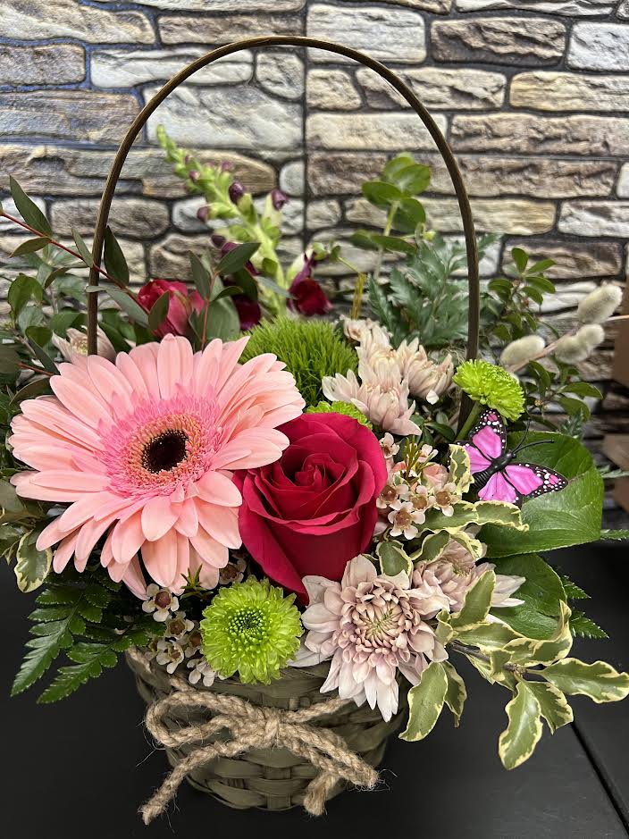 A basket is full of lovely arranged blooms, chosen to deliver joy and delight. Perfect for special occasions or just because, it's guaranteed to show your special someone how much you care.