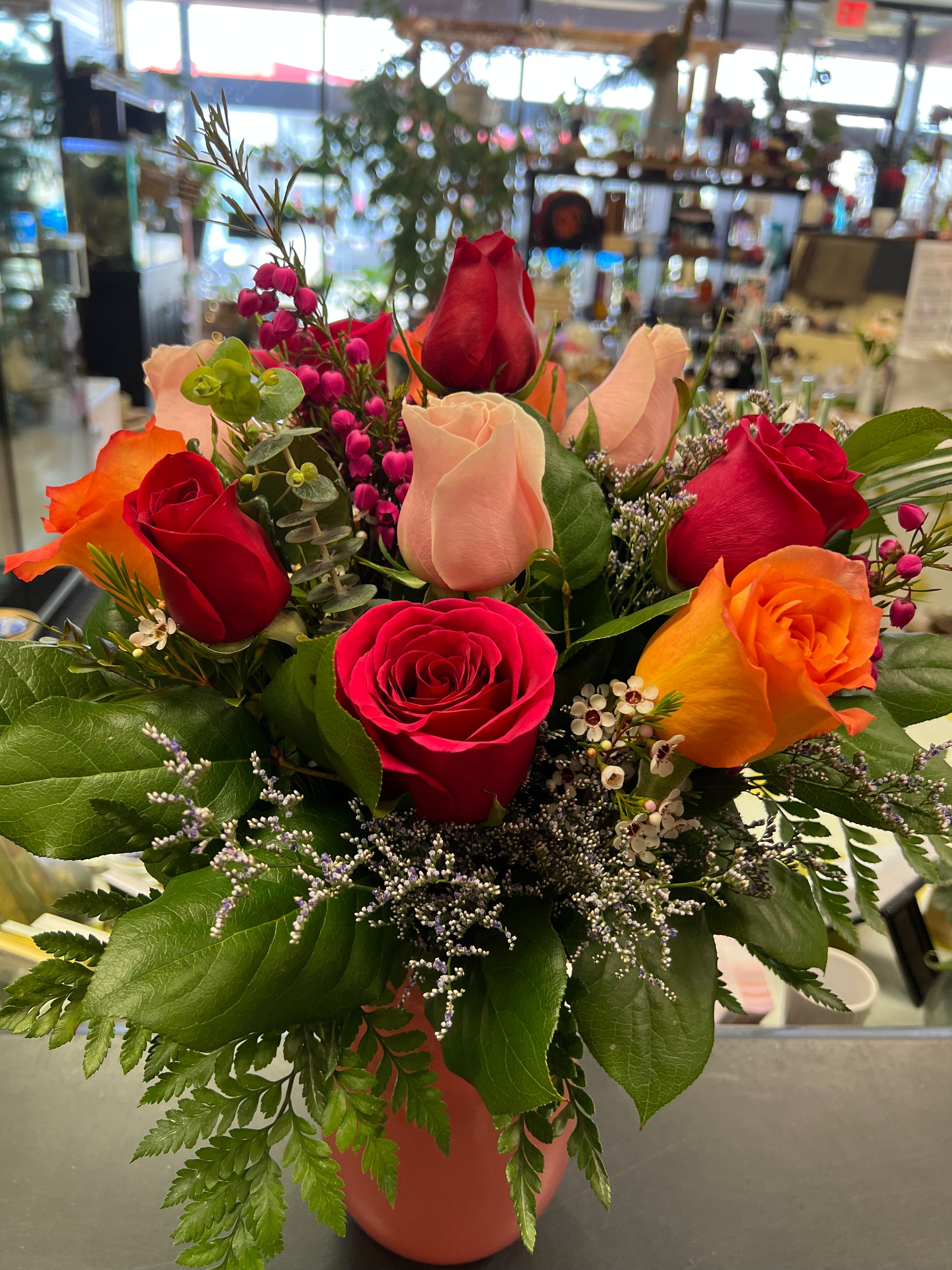Beautiful selection of twelve mixed-colored roses great for all occasions. Enjoy bright, vibrant colors of these beautiful roses that are sure to bring smiles!