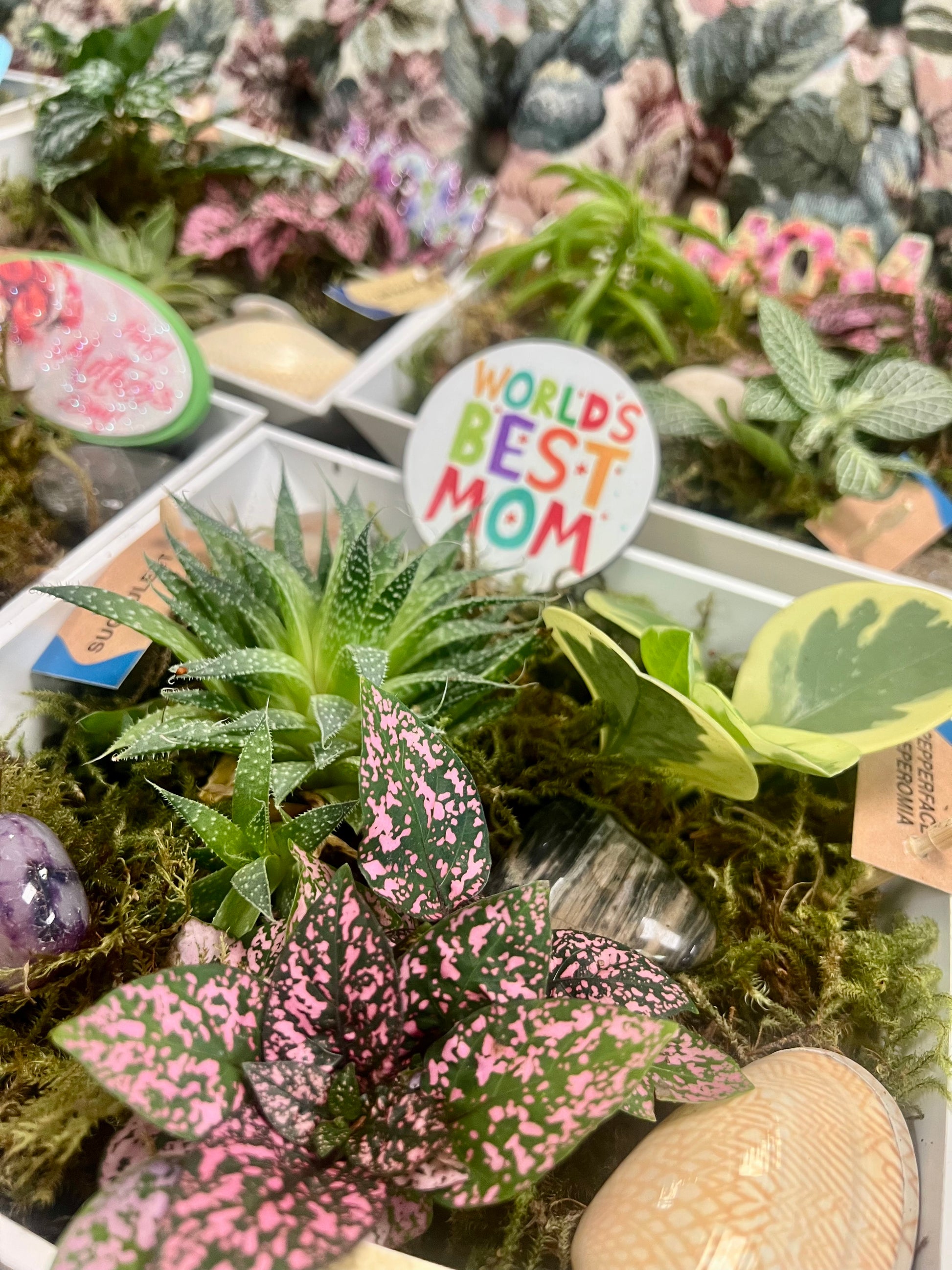 "Moms will adore this playful twist on traditional Mother's Day gifts. Our Moms love always grows MDAY planter is filled with beautiful house plants that symbolize love and growth. Give your mom a gift that will continue to flourish as she does. Limited availability!"
