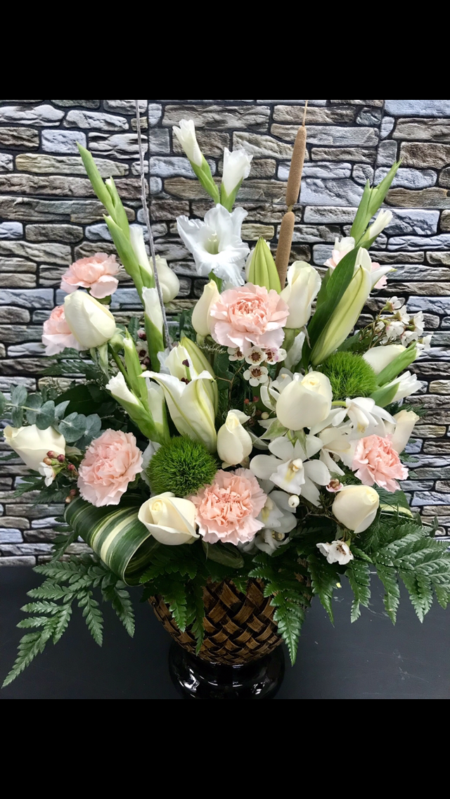 "Remember a loved one with our Field of Memories Sympathy arrangement, featuring soft and delicate colored flowers. This beautiful design serves as a loving tribute to honor their memory. Flowers are subject to change with availability.