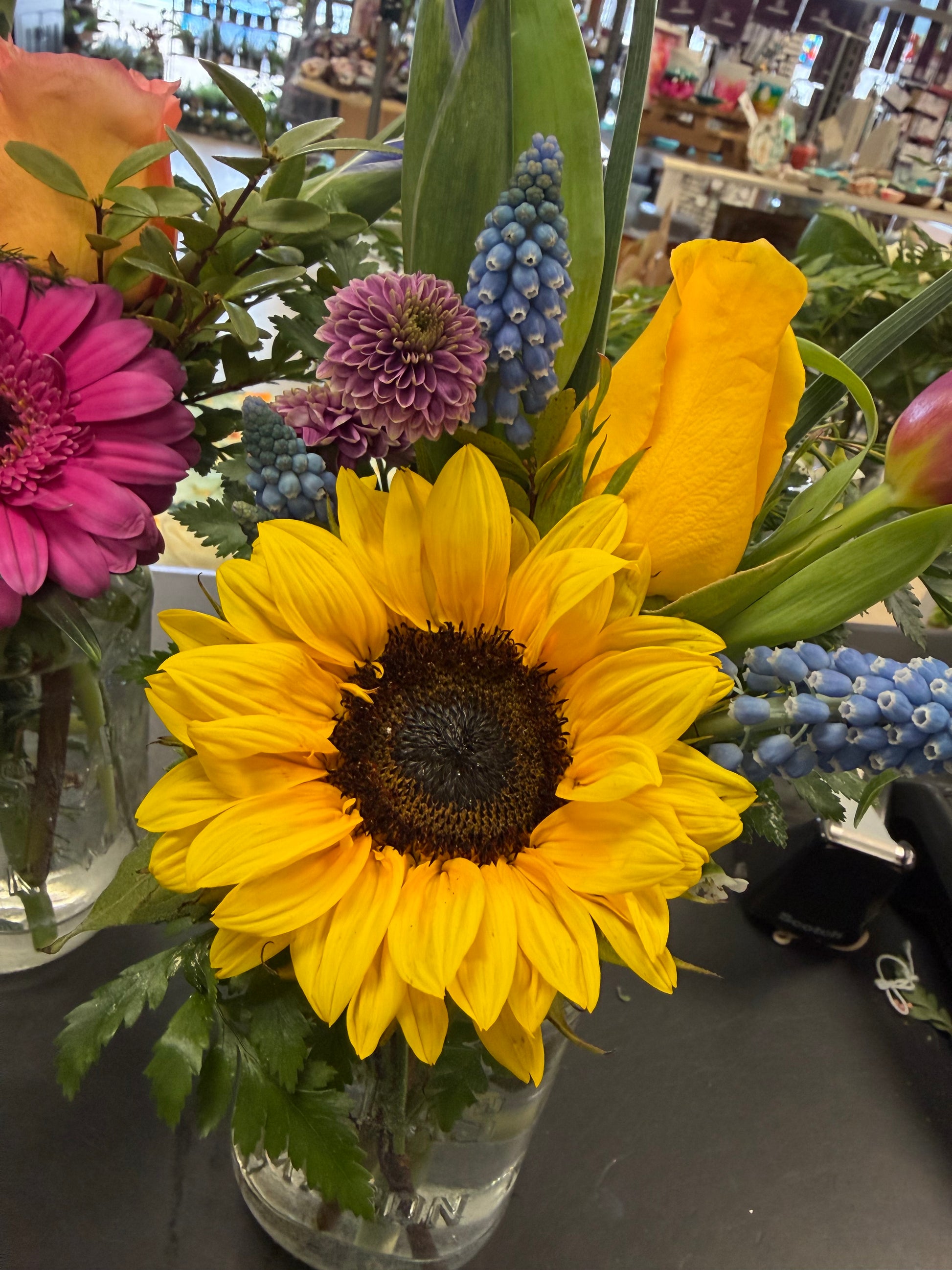 Beautiful spring seasonal flowers arranged in a cute mason jar !